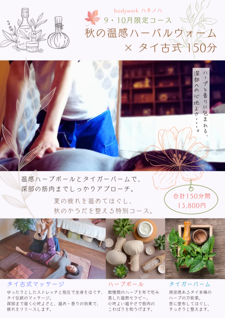 ✨ 秋の温感ハーバルウォーム × タイ古式 150分 ✨